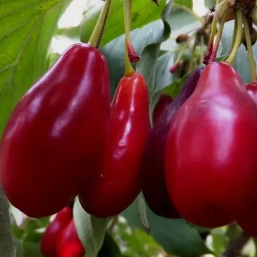 Кизил Костя - дерево с овальной кроной, высотой до 3,5 м, шириной до 3,0 м. Крупноплодный сорт кизила среднего срока созревания (первая декада сентября). Плоды крупные, грушевидной формы. Средняя масса 7 - 8г , длина плода 36,0-38,0 мм, ширина - 18,0-20,0 мм. Зрелые плоды красно-черные, мякоть темно-красная, плотная, сладко-кислая, ароматная. Косточка небольшая. Плоды кизила не осыпаются, хорошо сохраняются после уборки в течение 3-4 недель. В плодоношение вступает на 3-4 год. Плодоношение ежегодное