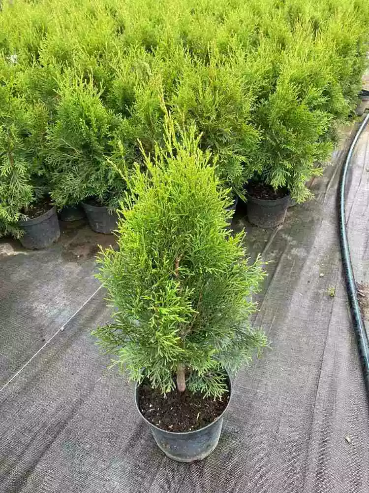 - Дерево має форму довгастого конуса з яскраво вираженою кроною та густим хвойним покриттям. Воно дуже м'яке, завдяки чому ландшафтні дизайнери люблять надавати йому різні скульптурні форми.