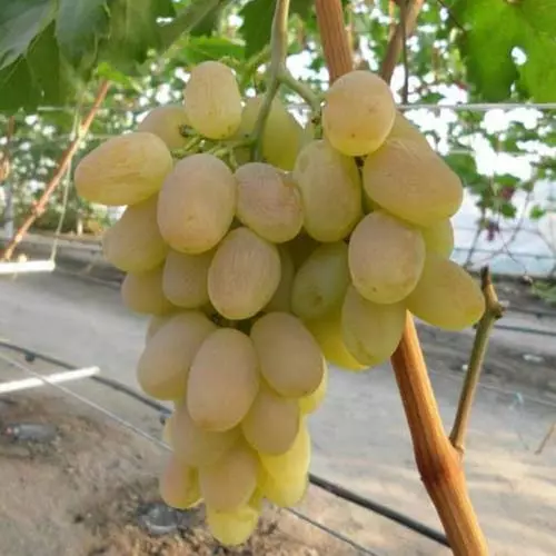 Грозди очень крупные, средним весом 900-1500 грамм, средней плотности или рыхлые. Количество ягод небольшое, но за своей счет величины масса грозди может достигать до 2 кг. Опыляется удовлитворительно.