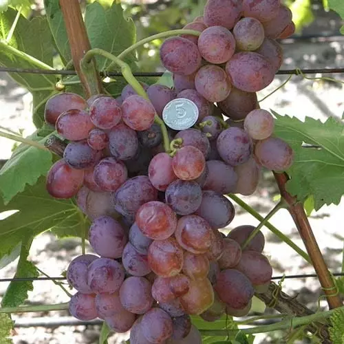 Кардинал (Cardinal) - столовый сорт винограда. Он получил распространение в Югославии, Франции, Италии и других странах. Коронка и верхние молодые листья молодого побега светло-зеленые, без опушения, со слабо-бронзовым оттенком на концах зубчиков. Рассеченность листьев средняя. Однолетний вызревший побег ярко-коричневый, узлы темно-коричневые. Лист крупный, округлый, среднерассеченный, пятилопастный, голый, блестящий, гладкий, иногда слегка волнистый. Верхние вырезы средней глубины и глубокие, чаще закрытые, со щелевидным или овальным просветом, нижние открытые, лировидные, узкие или в виде входящих углов. Черешковая выемка открытая, сводчатая, иногда с одной стороны окаймленная жилкой. Конечные зубцы треугольные, удлиненные, с округлыми вершинами и светлым окаймлением. Краевые зубчики треугольные, с выпуклыми сторонами (почти куполовидные) или пиловидные. Опушение отсутствует на обеих сторонах листа. Цветок винограда обоеполый. Гроздь крупная (длиной 19-28, шириной 13-19 см), цилиндро-коническая, рыхлая и очень рыхлая. Ножка грозди длинная (6-8 см), зеленая. Гребень зеленый, легко ломается. Масса грозди 342-510 г. Ягода очень крупная (длиной 21-29, шириной 18-23 мм), округло-овальная или овальная, иногда со скошенной вершиной и небольшой бороздкой на ней, фиолетово-красная, с дымчатым восковым налетом (данные промышленного виноградника, с невысоким уровнем агротехники - при хорошем уходе намного крупнее). Масса 100 ягод 600-700 г. Кожица сравнительно плотная, но легко разрывается. Мякоть мясисто-сочная, хрустящая, зеленовато-белая. Вкус винограда приятный, со слабо выраженным мускатным ароматом. В ягодах по 2-4 крупных семени.