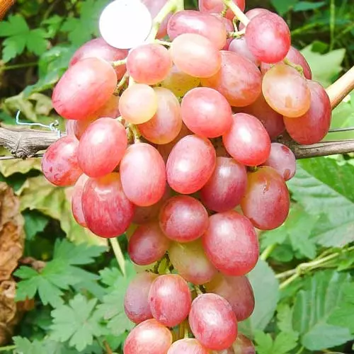Ливия - столовый сорт винограда сверхраннего срока созревания. Коронка молодого побега светло-зелёная, без опушения. Первый лист практически цельный, остальные – пятилопастные, средне-рассечённые. Черешковая выемка открытая. Однолетний вызревший побег светло–коричневого цвета. Цветок обоеполый. Гроздь крупная, длиной 25 см и более, цилиндрическая, средне-рыхлая. Некоторые грозди ветвистые. Ягода в грозди - от овальной до яйцевидной формы. Длина ягоды 28 мм и более, ширина 18–20 мм. Окрас ягоды – розовый. Мякоть мясисто–сочная, с мускатным ароматом и высоким сахаронакоплением. Кожица при еде не ощущается. В ягодах 1–3 семени, легко отделяющихся от мякоти.
