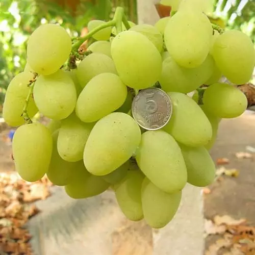 Виноград Монарх - столовая гибридная форма любительской селекции Е.Г. Павловский (Талисман х (Кардинал + смесь пыльцы)), сорт белого винограда ранне-среднего срока созревания. Цветок обоеполый. Съёмная зрелость с второй половины августа. Грозди Монарха крупные 500-700 г, без горошения. Ягоды овальные, желтые, на солнце с красным загаром. Очень крупные стандартные 36 х 26 мм, массой до 15 г. Мякоть винограда Монарх плотная, кожица легко съедаемая. Вкус гармоничный, с легким мускатным ароматом. Урожай долго сохраняется на кустах без потери товарных качеств. Побеги вызревают хорошо. Устойчивость к основным заболеваниям средняя, морозостойкость до - 23 С.