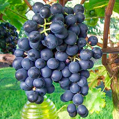 Мускат блау (Muscat Bleu) - универсальный сорт винограда, раннего срока созревания. Кусты сильнорослые. Грозди крупные, рыхлые. Ягоды черные, крупные округлые с хорошим мускатным ароматом. Урожайность средняя. Мускат блау нетребователен к местоположениям. Может повреждаться осами. Сорт достаточно устойчив к грибным болезням - милдью и оидиуму. Виноград используется для потребления в свежем виде, пригоден для приготовления красных мускатных вин с сильным ароматом.