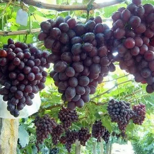 Низина, столовая форма винограда, ранне-среднего или среднего срока созревания. Продолжительность вегетационного периода от начала распускания почек до полного созревания ягод составляет 125-130 дней. В условиях г. Новочеркасска созревает в конце августа - начале сентября. Грозди крупные, массой 600-700 г, отдельные до 1,5 кг, цилиндро-конические, средней плотности. Ягоды крупные и очень крупные, овальные, 30,4 x 22,3 мм, средней массой 10-12 г, красно-фиолетовые, гармоничного вкуса. Мякоть ягод мясисто-сочная, кожица съедаемая. Сахаристость 17-18 %, кислотность 8-9 г/л. Особенность гф Низина - очень раннее окрашивание ягод, практически на 14 дней раньше потребительской зрелости ягод. Высокий товарный вид. Плодоносных побегов 60-80 %. Коэффициент плодоношения 1,0-1,4. Транспортабельность хорошая. Морозостойкость до -23 °С.