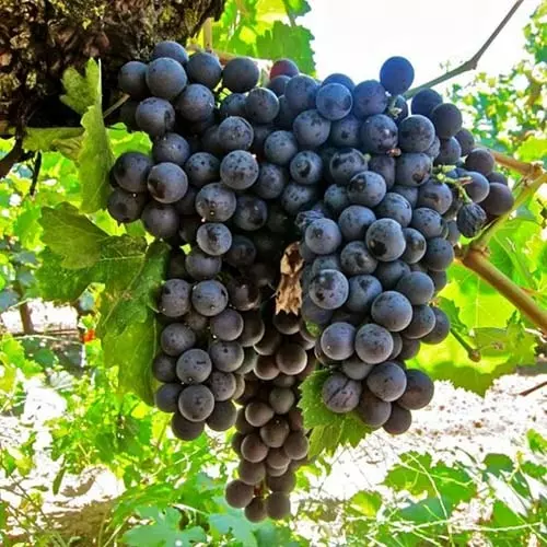 Ягоды яйцевидной формы, отличаются красивым темно-синим оттенком. Вкус у этого сорта простой, гармоничный, присутствует кислинка. Сахаристость таких ягод колеблется между 17-24%. Мякоть винограда плотная, хрустящая и очень сочная, покрыта кожицей средней плотности.