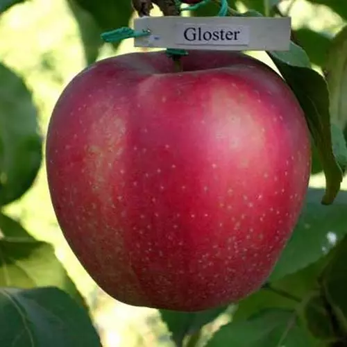 Яблоня "Глостер" – это сорт немецкой селекции, полученный от скрещивания сортов Ричард Делишес и Глоккенапфель. Сорт Глостер хорошо адаптирован к условиям выращивания в Украине. Плоды довольно крупные, массой 165-200г округло-конические, тёмно-красная, шкурка блестящая, прочная. Мякоть кремовая, сочная, кисло-сладкая. Снимать яблоки с дерева рекомендуется в конце сентября – начале октября. Наилучших вкусовых качеств, плоды достигают к концу декабря, хранятся в прохладном помещении до апреля. Дерево растет быстро, крона пирамидальная или овальная, густая. Рекомендуется своевременная обрезка. обладает высокой зимостойкостью. Устойчивость к мучнистой росе высокая, к парше – средняя.