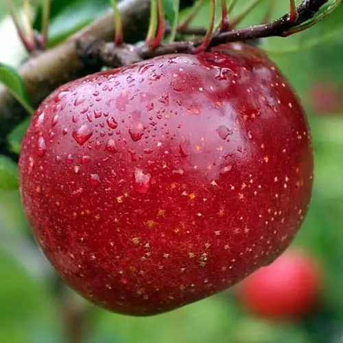 Яблука гладкі, округлі, не надто великі, середня вага 120-150 г. Шкірочка щільна, її покриває червоний яскравий смугастий рум'янець практично по всій поверхні. М'якоть ніжна, дрібнозернистий, дуже соковита, солодка і ароматна. Плоди містять велику кількість вітамінів, відмінно транспортуються і зберігаються близько 2 місяців.